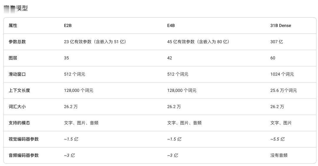 总的来说,Gemma 4 引入的功能和架构改进包括: