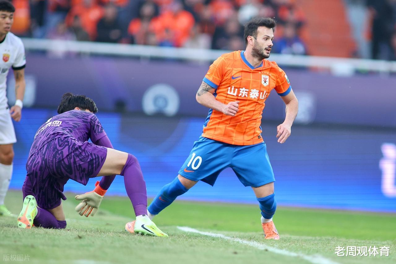 比赛伊始,场面出乎意料。第9分钟,海港队率先打破僵局。刘若钒右路送出一记精准斜传,李新翔包抄垫射破门,海港1-0领先。客场作战的海港队似乎正朝着计划中的三分迈进。然而,比赛的第一个转折点出现在第41分钟。泰山队发动快速反击,泽卡充分发挥支点作用,护住皮球后分给插上的卡扎伊什维利。卡扎伊什维利跟进杀入禁区,冷静低射远角得手,将比分扳为1-1。这个进球不仅稳定了军心,更展示了泰山队反击的效率。下半场开始后,泰山队攻势更盛。第49分钟,克雷桑鱼跃冲顶,皮球狠狠击中横梁,惊出海港门将颜骏凌一身冷汗。