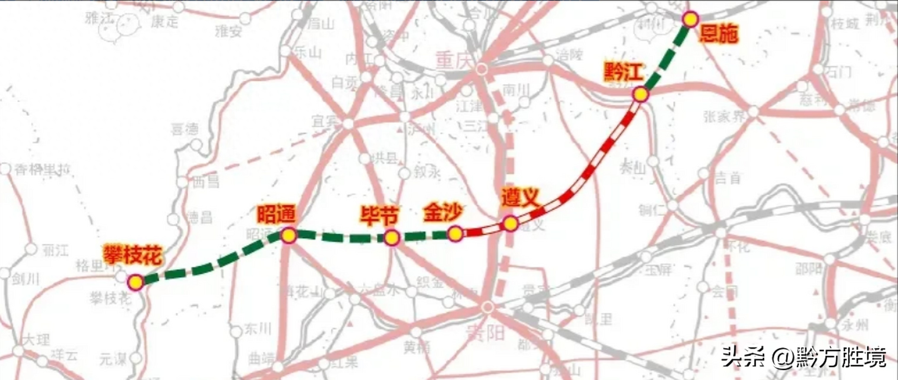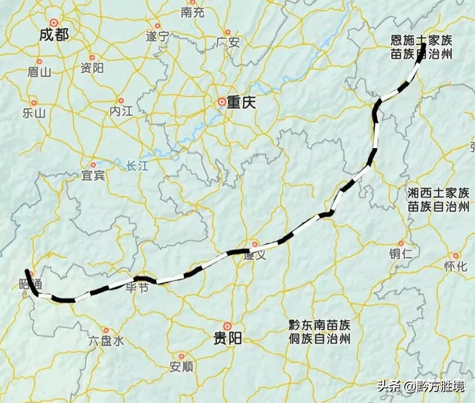 为了解决这个问题,贵州早就规划了一条才横向走向的铁路,也就是昭黔铁路。该铁路从云南的昭通出发,经过贵州的威宁、赫章、毕节、金沙、遵义、德江、沿河等16个市县区,最终到达了重庆的黔江,全长700—800公里,设计时速160公里。如果再配合上六盘水—纳雍—织金—毕节的铁路,那贵州北部的铁路交通就基本打通了。