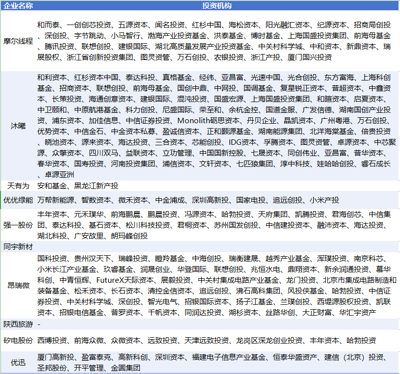 此外,红杉中国、前海母基金、深创投、建银国际、中关村科学城、万石创投、海达投资、哈勃投资、丰年资本、追远创投、小米、中信证券投资、图灵资管、中卫颐和、泰达科投等投资机构分别拿下两家。