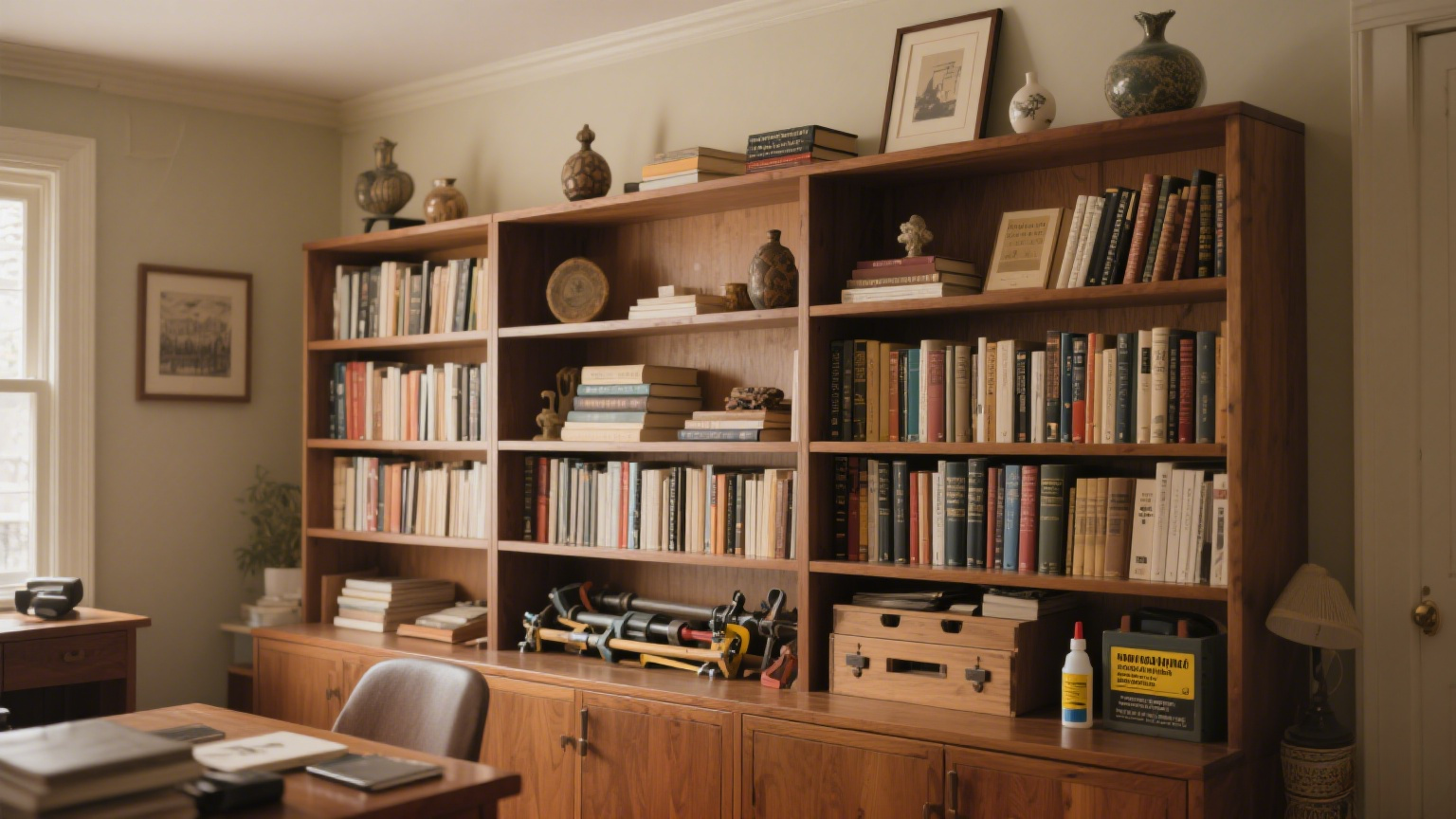 书架上层摆放偶尔读的书籍和装饰摆件,中层放置常读书籍(高度适中,方便拿取),下层收纳厚重的工具类书籍;在书架角落放一小盒防虫剂(避免直接接触书籍),每周用干布擦拭书架表面和书籍封面,每月整理一次错位书籍,保持书架整洁。