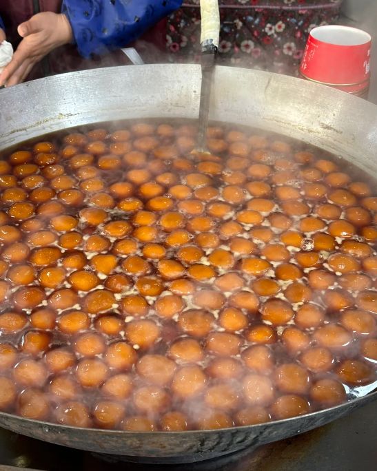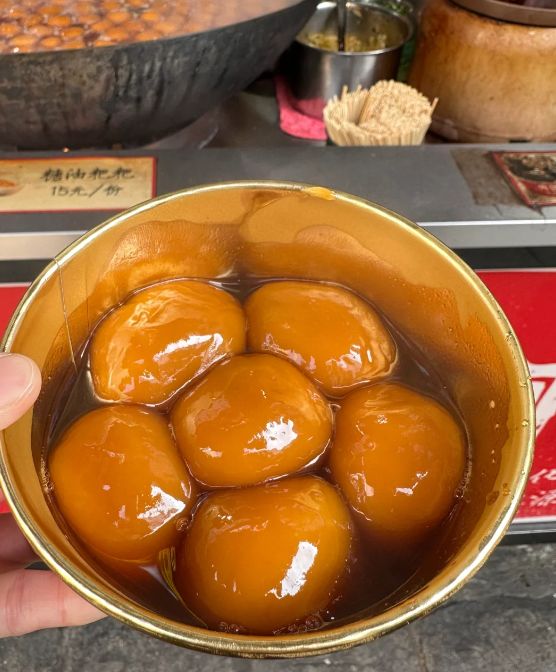 刚出锅的糖油粑粑最好吃。用竹签串起来,咬一口,外皮是脆的,带着焦糖的香味,里面是软软的、糯糯的,糯米粉的清香和糖的甜味融合在一起。一口一个,根本停不下来。凉了之后,外皮会变软,但里面的糯米依然软糯,又是另一种口感。