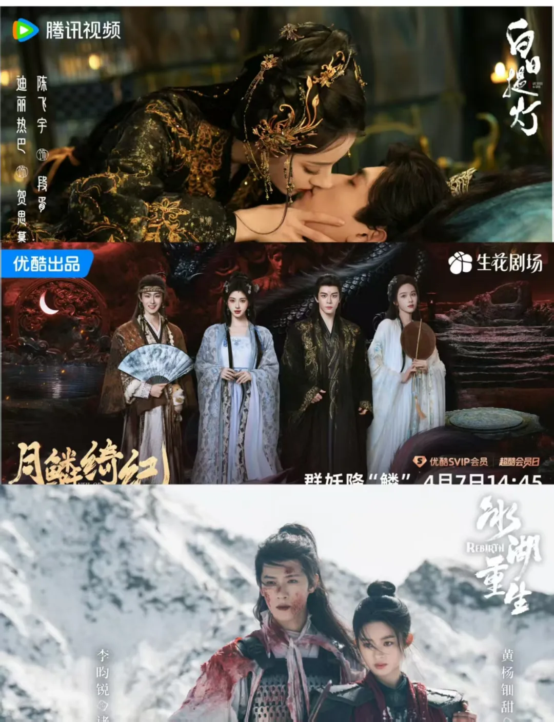 腾讯《白日提灯》和优酷《月鳞绮纪》正面打,爱奇艺腾讯拼播《冰湖重生》加入战局。所谓美学,他们分别对应东方鬼魅、全妖宴幻境、冷色调战损。美则美矣,招商、热度如何?