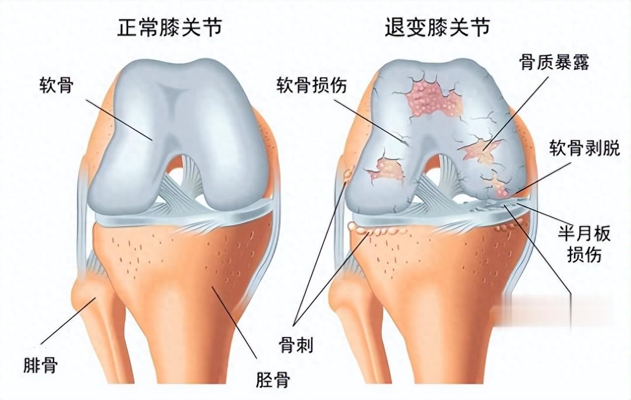 膝骨关节炎是一种以膝关节软骨退行性变和继发性骨质增生为特征的慢性关节疾病,主要表现为关节疼痛、僵硬、活动受限,严重时可导致关节畸形和功能障碍,常见于中老年人群,严重影响患者的生活质量。