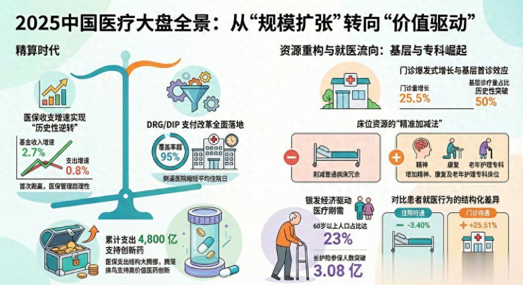 2025年的数据无情地宣告:那个闭着眼睛建大楼、加床位就能赚钱的时代,已经彻底落幕。 在这场以“去冗余、强质控、调结构”为核心的医疗供给侧改革中,谁能率先完成从“规模驱动”向“价值驱动”的转身,谁就能在下一个十年屹立不倒。