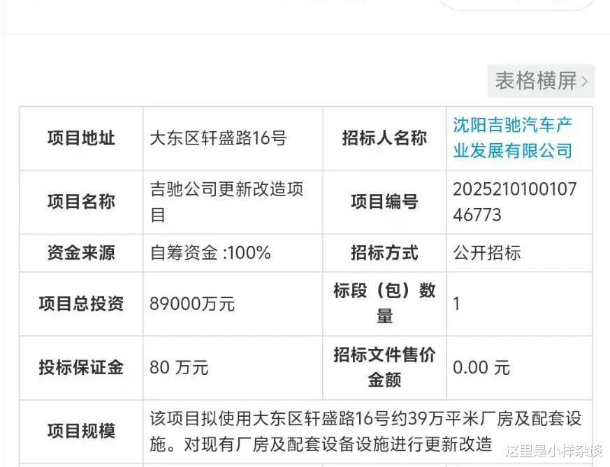 5月份沈阳大东区就成立了沈阳吉驰汽车产业发展有限公司,该公司动用8.9亿元招标改造上海通用北盛北厂区汽车厂房,未来将在通用北盛的原址生产汽车零件。