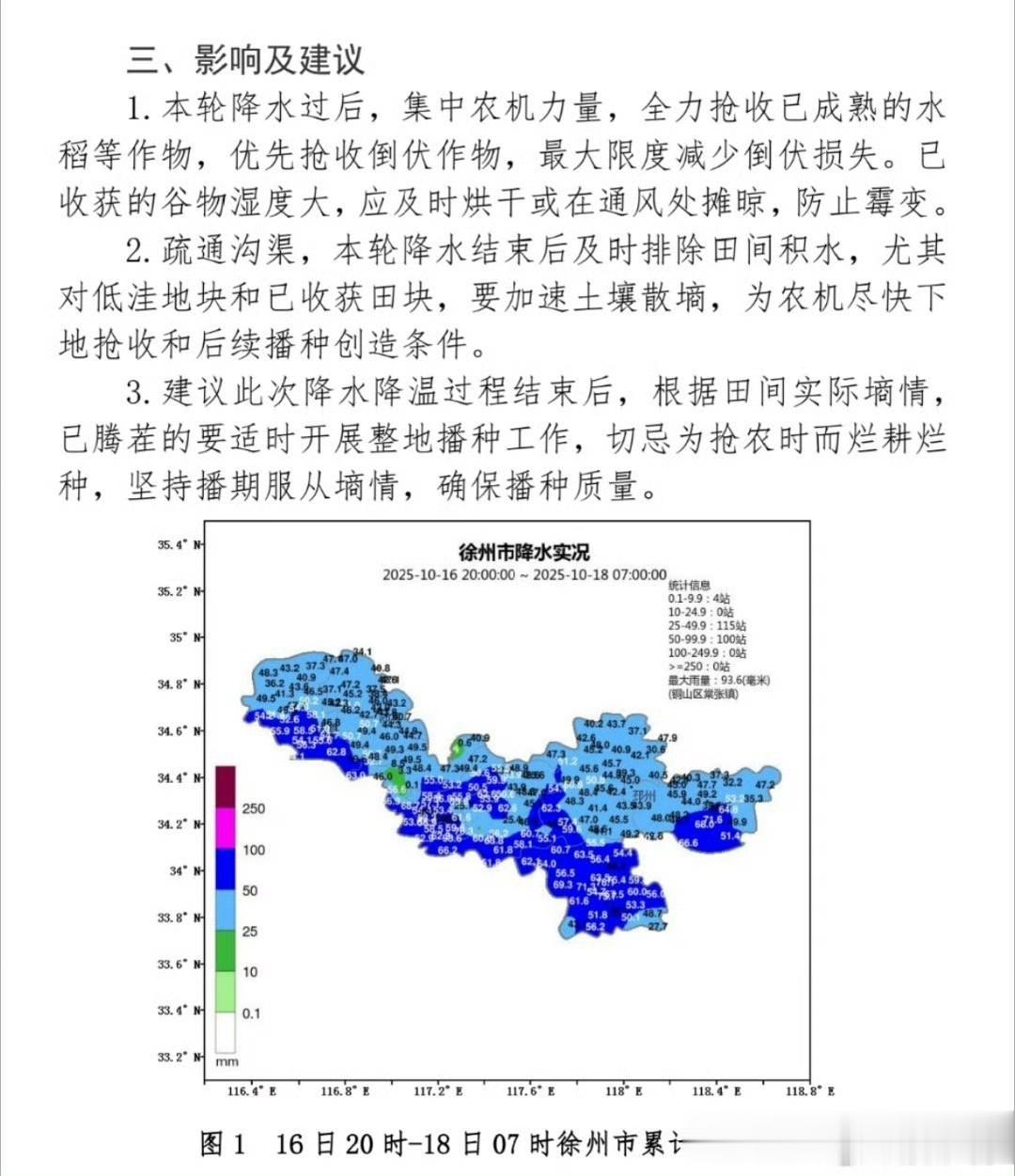 受低层切变影响,16日夜间﹣18日07时我市普降大雨,部分地区暴雨。全市平均雨量49.6毫米,共100个站雨量超过50毫米(占全市45.5%),最大雨量93.6毫米(铜山区棠张镇),最大小时雨强26.1毫米(睢宁本站)。随着降水系统进一步南压,我市转为云系天气。