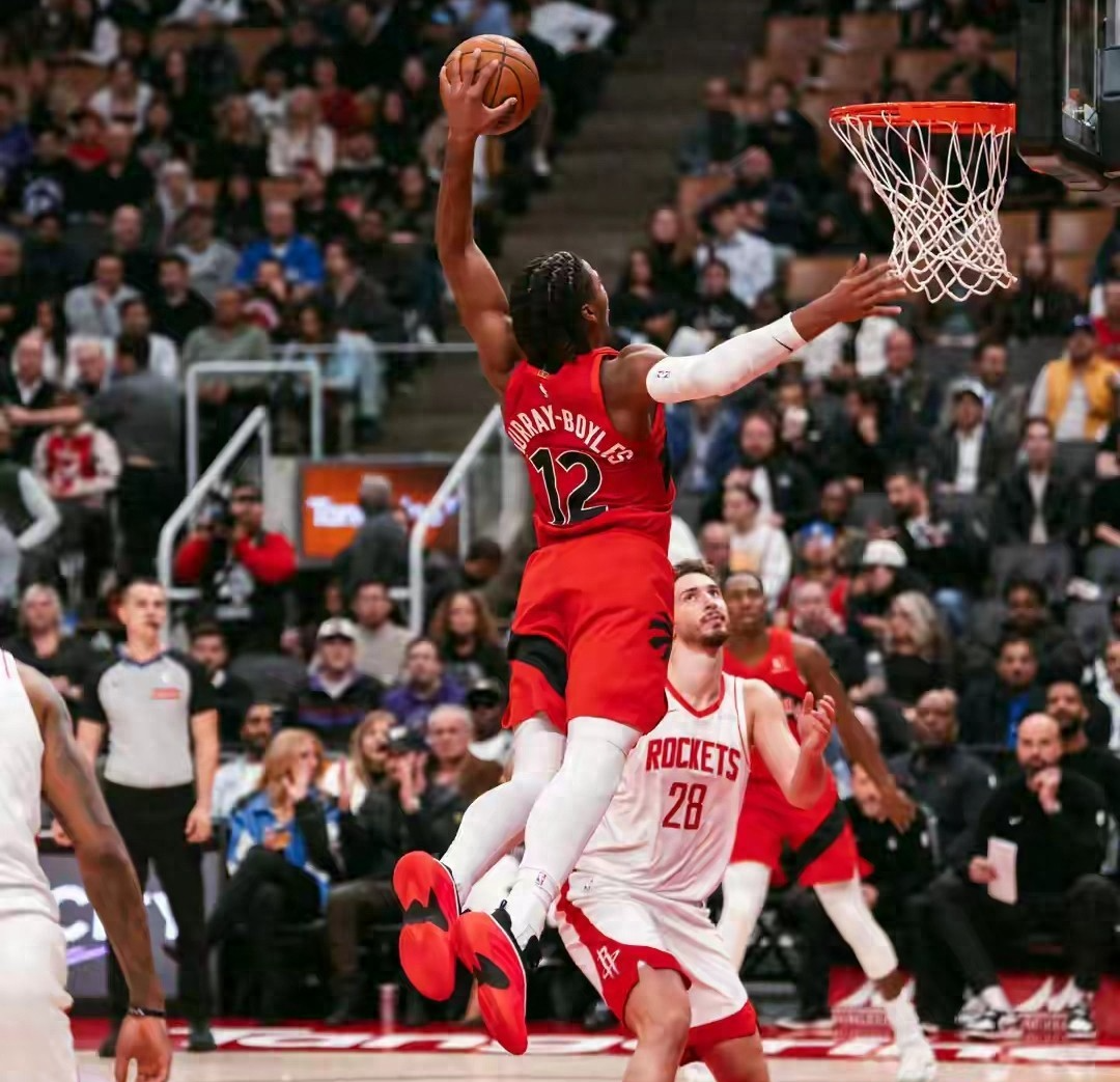 首节开打,火箭迅速进入状态。贾巴里·史密斯率先在三分线造犯规,两罚全中为球队破冰,杜兰特紧接着里突外投连得5分,申京则在内线策应送出2记助攻,帮助火箭快速建立优势。猛龙虽靠英格拉姆的中距离跳投和巴恩斯的篮下冲击紧咬比分,还命中3记三分试图反扑,但首节结束时,火箭仍以39-30领先9分,杜兰特与贾巴里·史密斯单节合砍18分,成为球队领先的关键。