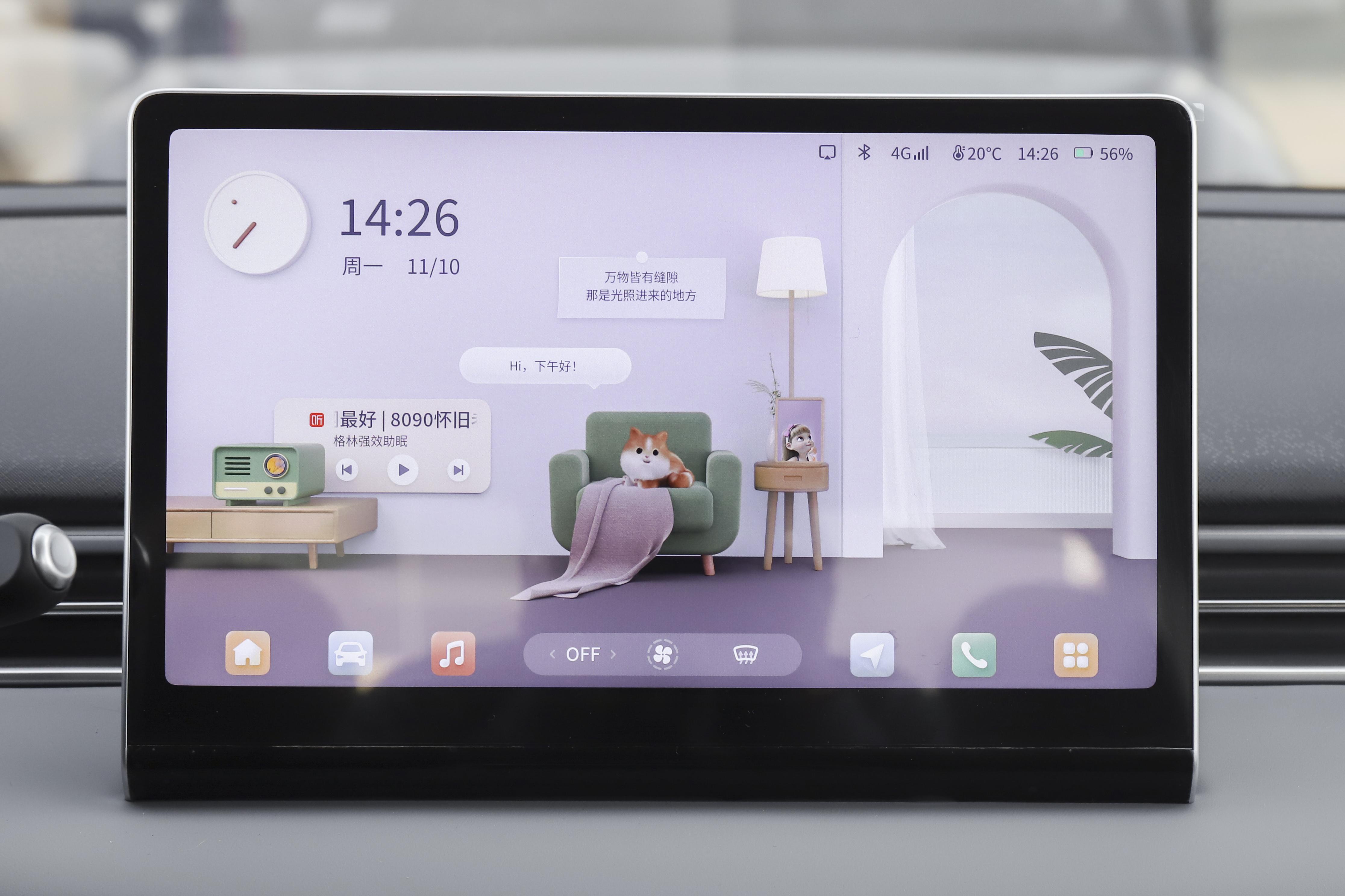 坐进纳米01的车里,第一感觉就是它的色彩搭配确实花了心思。除了常见的黑色灰色组合,还有几种双拼色的选择,比如红色配米色,甚至还有一套黑色搭紫色的,这在同级别小车里还挺少见的,有种时尚单品的感觉。整个内饰用了不少圆角的设计,看起来就挺舒服,不会有那种硬邦邦的廉价感。仪表盘是个小方块,显示信息清楚又不挡视线。那个12.8英寸的悬浮中控屏是视觉中心,车机给了8+128G的存储,操作起来反应速度不错,至少日常用导航、听歌这些不会觉得卡。