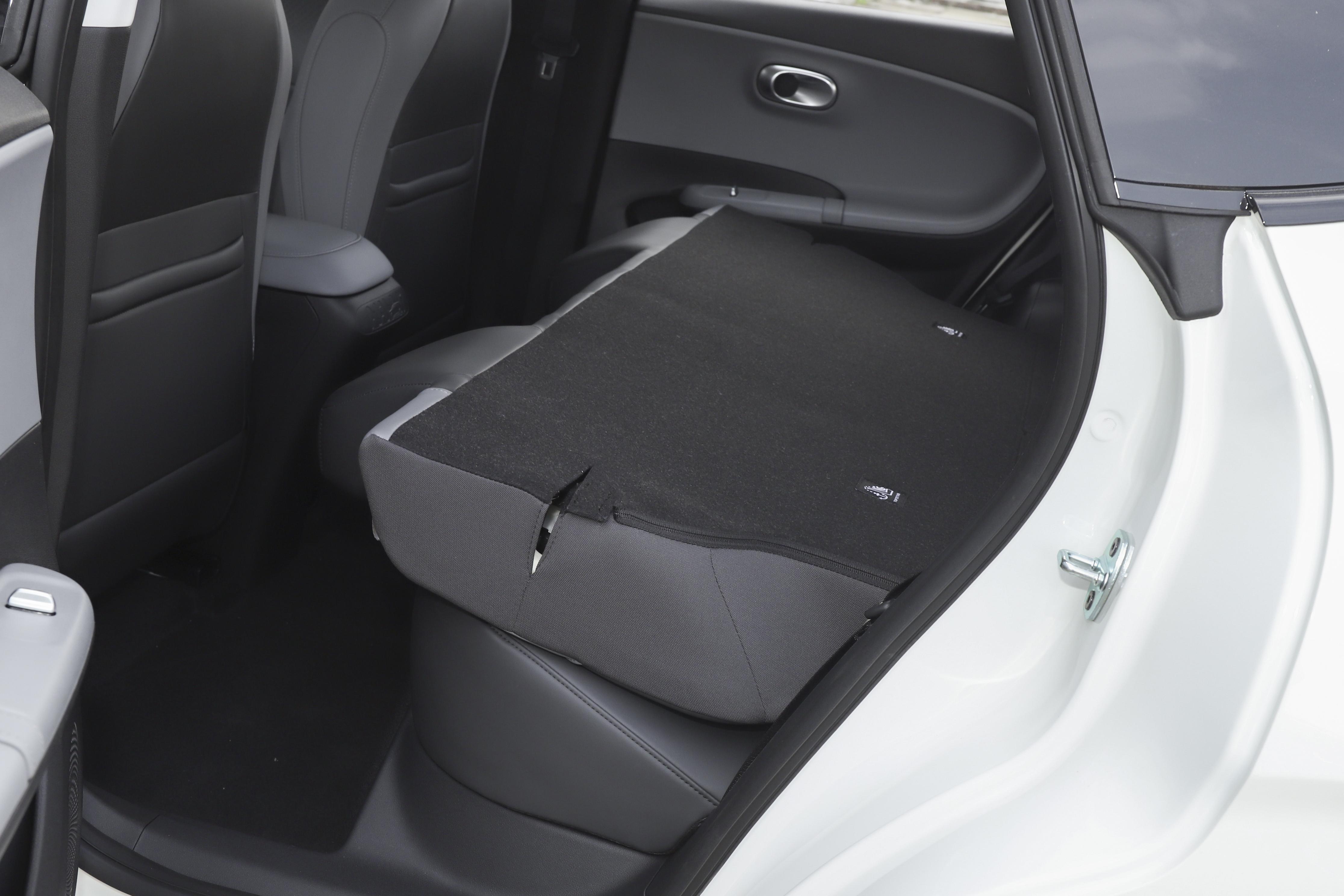 再聊聊空间和乘坐感受。后备箱常规下有326升,能轻松容纳两个20英寸的行李箱,把后排座椅放倒后能扩展到945升,搬运大件物品也比较从容。以1米65的乘客做参考,后排头部空间有两拳多,腿部空间接近两拳,算是够用的。座椅填充物软硬适中,坐着还行。它有个让前排座椅近乎180度躺平的休息模式,对中午想在车里打个盹的朋友很友好,但操作起来有点繁琐,需要先拆掉头枕。而且这个模式下,后排乘客的座椅靠背角度是固定的,近乎垂直坐着,体验感会打些折扣,没法像有些竞品那样调节角度来放松。