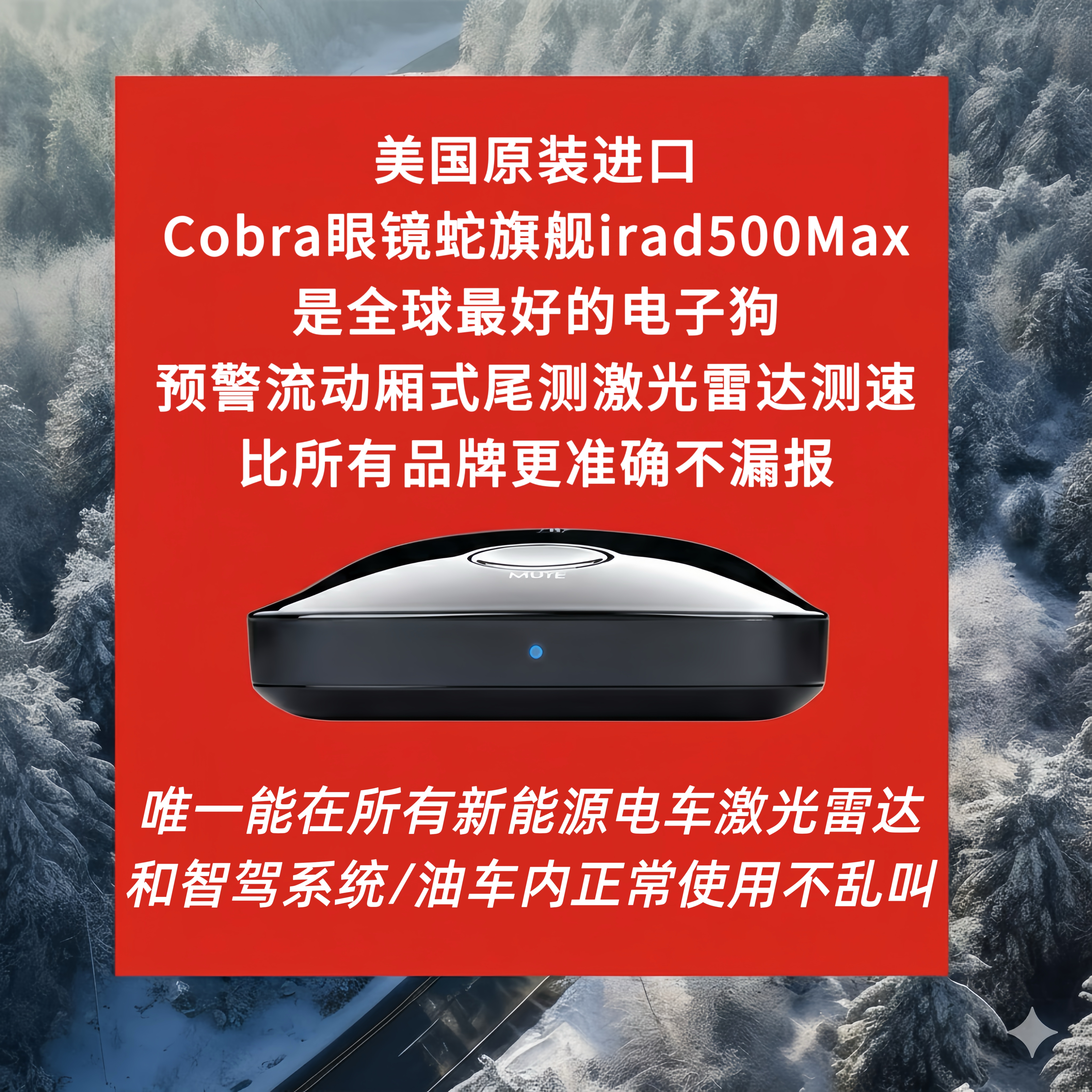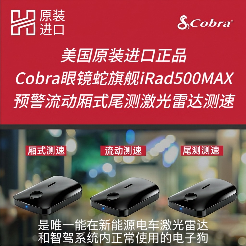 世界最好的美国原装进口Cobra 眼镜蛇国际版旗舰irad500MAX电子狗激光雷达探测器采用先进的AI智能滤波技术,可有效减少误报,不同测速警报的独特音调清晰易懂。固件更新让眼镜蛇旗舰机型与时俱进至少可以长达10年以上不漏报不乱叫 准确无误的预警流动测速箱子测速尾测激光雷达测速。
