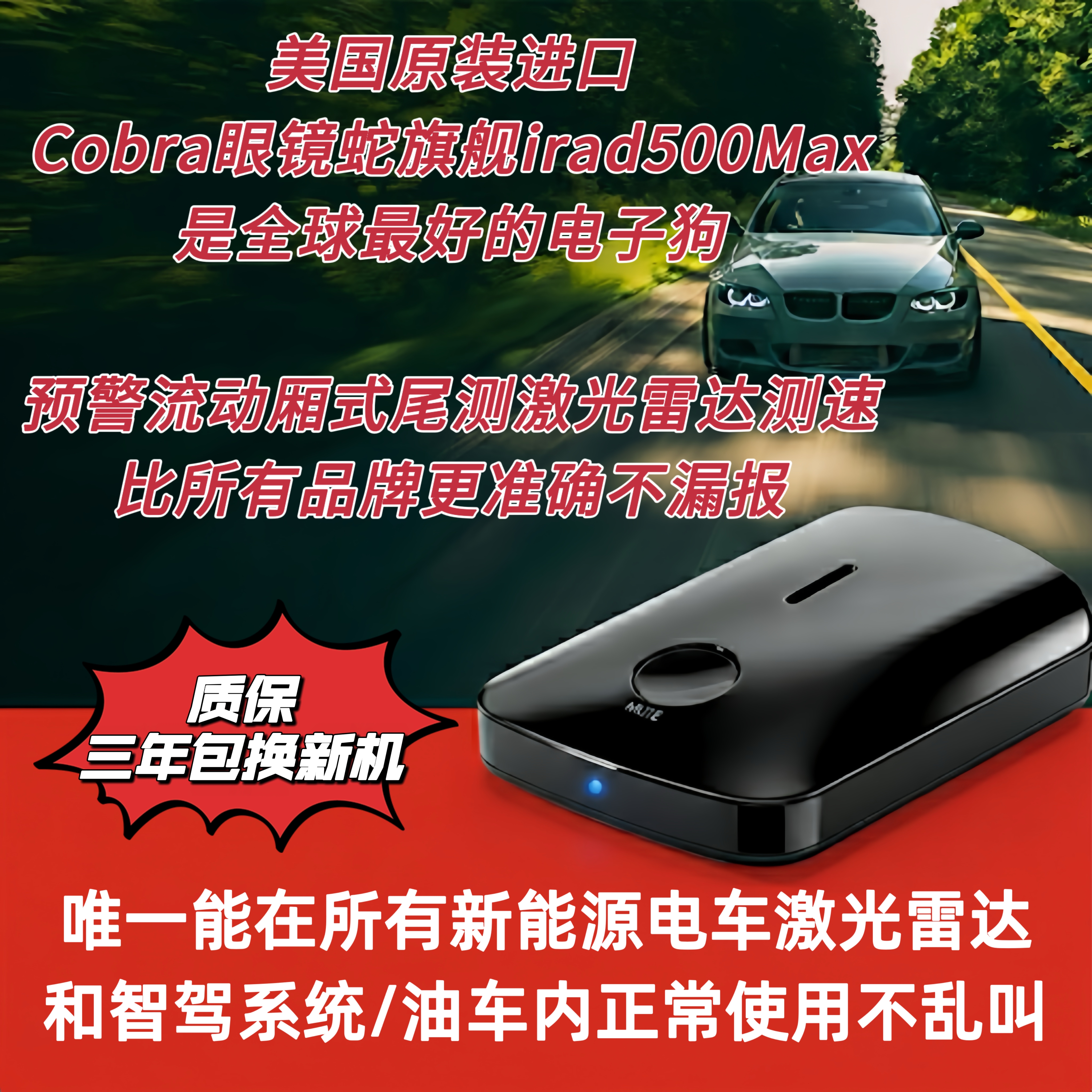 无论您之前使用的是beltronics贝尔电子狗、escort护航电子狗、情圣一号汽车电子狗、还是杂牌的UNIDEN友利电电子狗都已淘汰因为被新能源电车的激光雷达干扰一直乱叫所以无法使用。只有美国眼镜蛇国际版旗舰irad500MAX是唯一不被新能源电车激光雷达干扰,准确安静不乱叫,Cobra 眼镜蛇旗舰irad500MAX都能提供驾驶员 65 年来一直信赖的可靠性和卓越的工程技术。