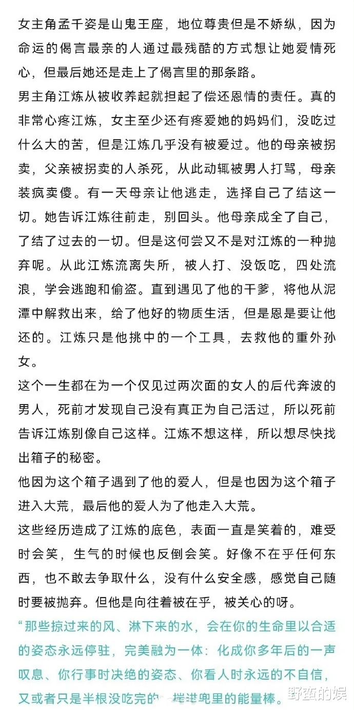 剧中的孟千姿作为山鬼一族的领袖,需兼具上位者的威严与探险者的果敢。景甜在《司藤》中展现的“女王气场”与《四海重明》中的谋略感,与此角色高度契合。其浓颜系五官与山鬼“神秘高贵”的设定相得益彰,而过往打戏经验(如《四海重明》中的武打场面)也能支撑动作戏份的完成度。