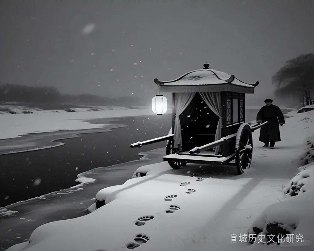 十号的早上。他用被包着坐在轿里面,将走出街口,雪已没着轿夫的腿湾,一脚下去黄泥水有一二尺深。等走到山口,但见白茫茫一望无边,完全雪海一样,天地一色,耀得人眼都睁不开,那里还看得一点路眼!刺骨的北风挟着雪花没头没脸的只盖下来,他是完全绝望了,只好又让轿夫抬回来。客栈里住满了往宣城的客人,都是被风雪所阻,他只怨恨着自己,不该到锡圭家里去睡,让兵大爷把轿夫拉去。
