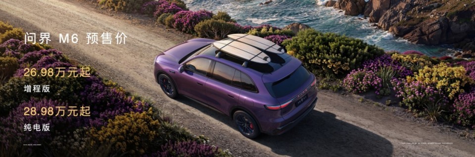 当然,此次春季发布会的最大亮点在于问界即将推出的全新车型——M6,并同期开启预售,增程版预售价26.98万元起,纯电版预售价28.98万元起 。从车身尺寸来看,问界M6多车身尺寸4960×1985×1736mm,轴距2950mm,属于中大型SUV。整体采用空气动力学设计,通过多处设计优化,将风阻系数降低至0.239cd ,并且应急涉水深度可达700mm。