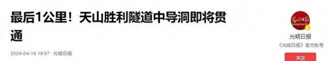 信息来源:《最后1公里!天山胜利隧道中导洞即将贯穿》,光明日报,2024年4月16日。