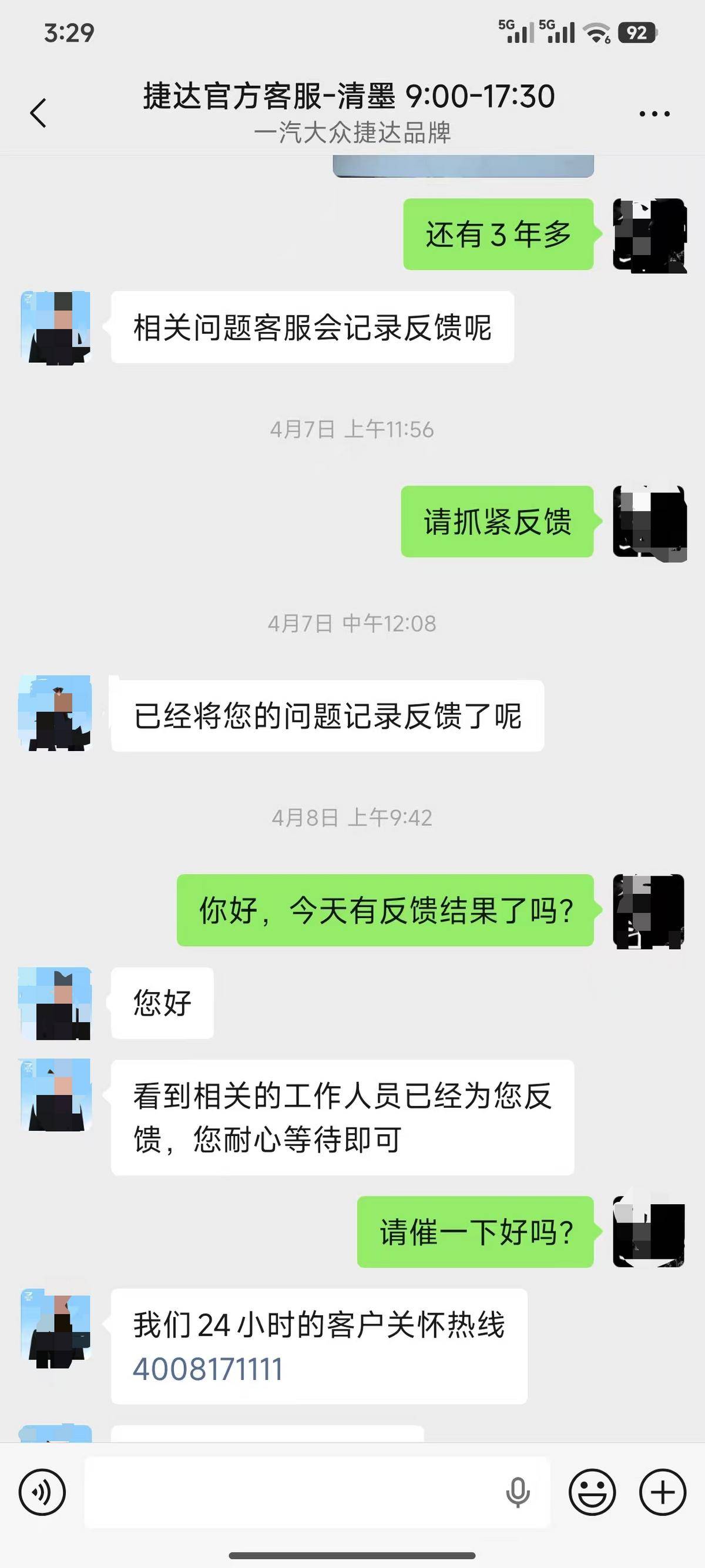 针对上述车主反映的延保服务无法兑现、经销商监管、车辆质量投诉、品牌发展等相关问题,车友公社致电了捷达品牌官方客服,就相关事项进行核实与问询。截至发稿前,车友公社尚未收到捷达品牌针对上述事项的任何回应。