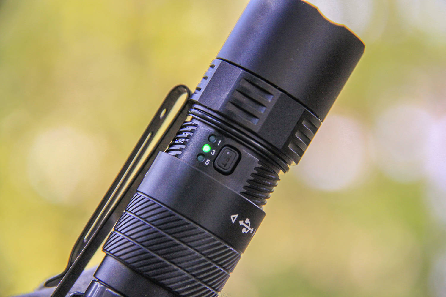 有了筒身直充功能,就能随时随地给PD26R ACE补充电量,充电中还有红色指示灯常亮提示,一个小时左右由红转绿,就快速充满了,很方便。
