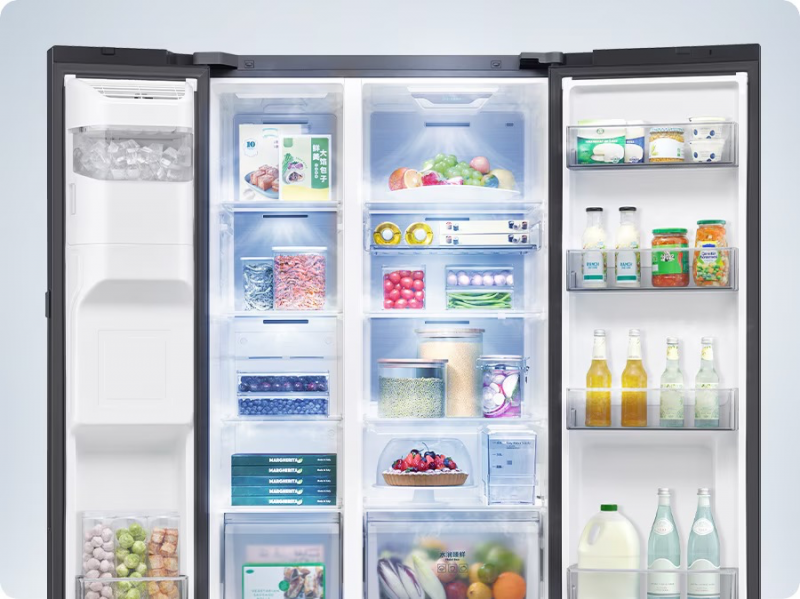 初秋时节,香甜西梅、软糯柿子等水果极易腐坏,肥美螃蟹的妥善保鲜也是家庭餐桌上的加分项,冰箱仍是食材保鲜的主战场。三星AI神 冰箱5系采用全方位立体环绕冷流技术,将冷气均匀输送到每层搁板,减少温度波动,让上层的甜食、中层的果蔬与下层的粮油互不干扰,保持最佳口感。金属速导冷背板还让蓄冷更高效,即使频繁开关门,也能快速锁住食材原鲜,减少营养流失。