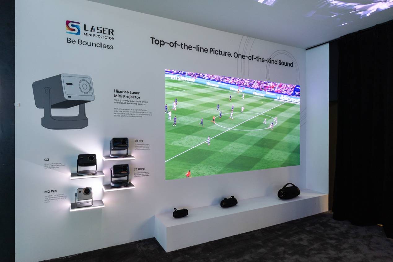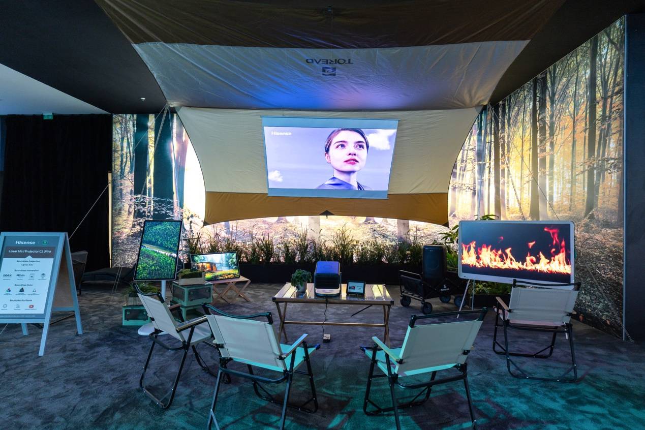 在海信集团的展台上,四款三色激光投影组成强势产品矩阵,其中备受瞩目的焦点,正是Vidda的旗舰C系列。通过特别搭建的露营场景,吸引了大量观众纷纷驻足落座体验 —— 在真实场景的衬托下,三色激光技术的优势尽显,赢得现场一致好评。