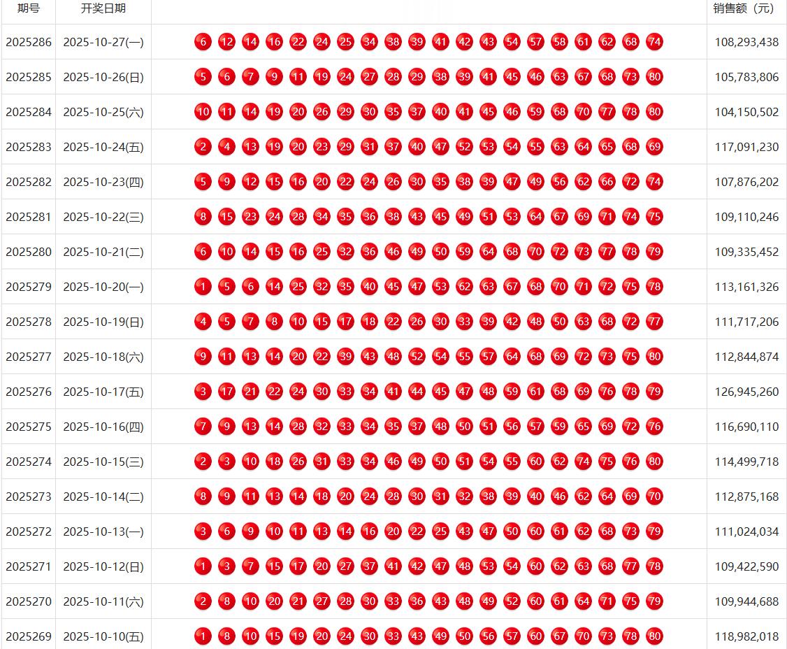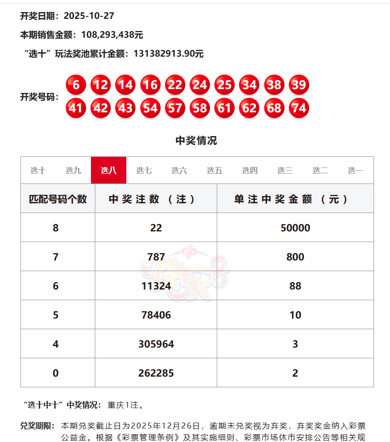 选八中出22注,幸运之手呀! 近二十期开奖也销售情况如下