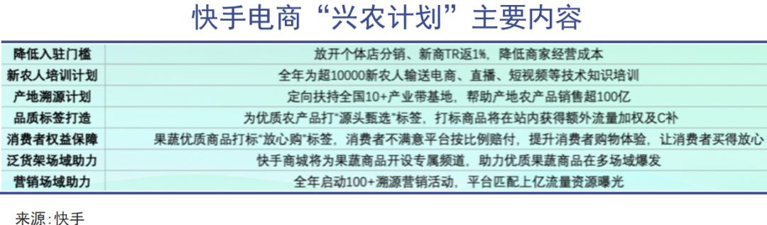 电商平台也开展了一系列助农行动,比如抖音为生鲜品类提供免佣政策,并以流量扶持、返还推广费等方式降低创业门槛;拼多多通过“农云行动”计划带动数千万农业生产者参与数字经济;快手推出“兴农计划”,在开店、流量与产品供应等多个环节给予扶持等。