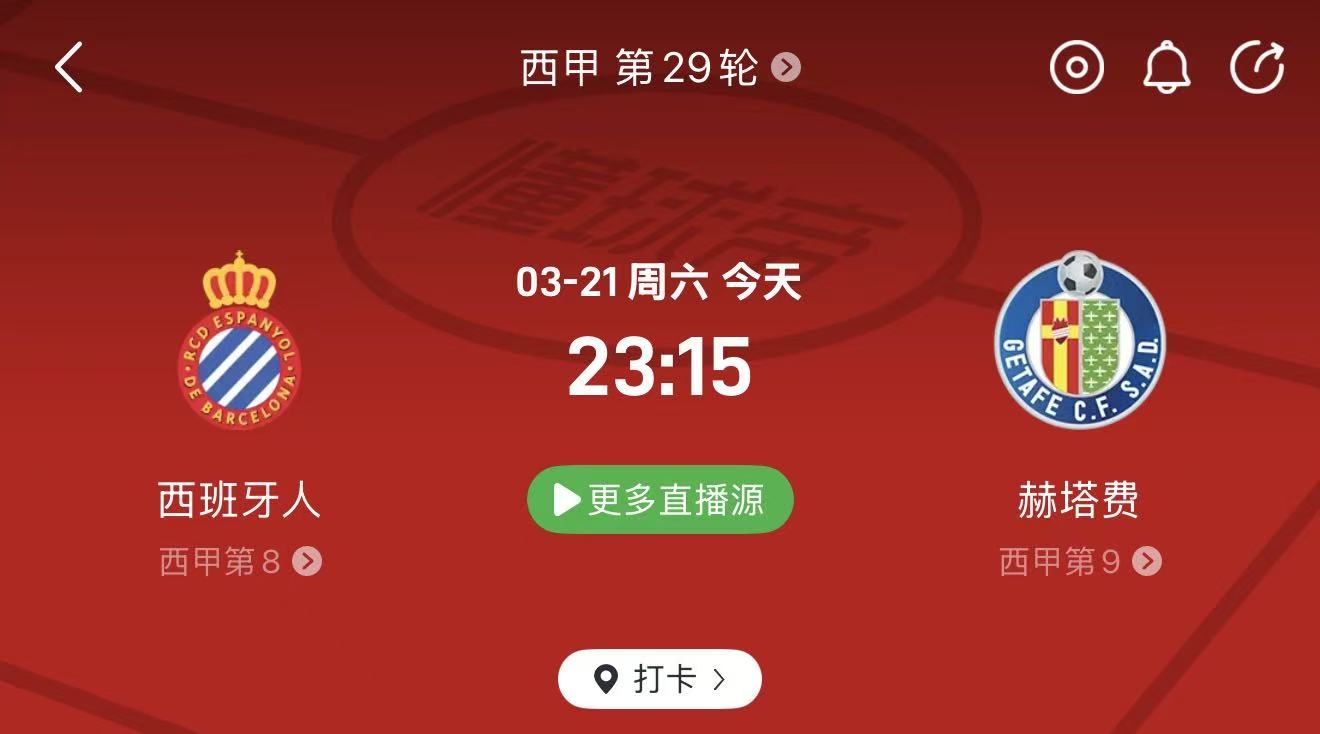 🔹 周六016 西甲:西班牙人 vs 赫塔菲(23:15)