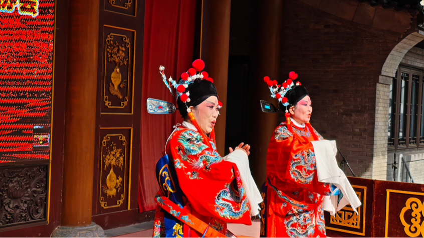 随着主持人李英杰的精彩开场,演出正式拉开帷幕。18个精心编排的节目轮番上演,涵盖秦腔、豫剧、黄梅戏、曲剧、眉户等多个剧种,尽显传统戏曲的丰富底蕴。侯丽芳与王小爱联袂演绎的秦腔《金榜题名》字正腔圆,王会玲带来的《西湖山水》韵味悠长;刘玉侠、闫京秋合作的红灯记选段《闹工潮·听奶奶》饱含深情,王靓的《舱舟》、张孝鸽的《飘彩》等秦腔经典选段接连登场,引得台下观众阵阵喝彩。