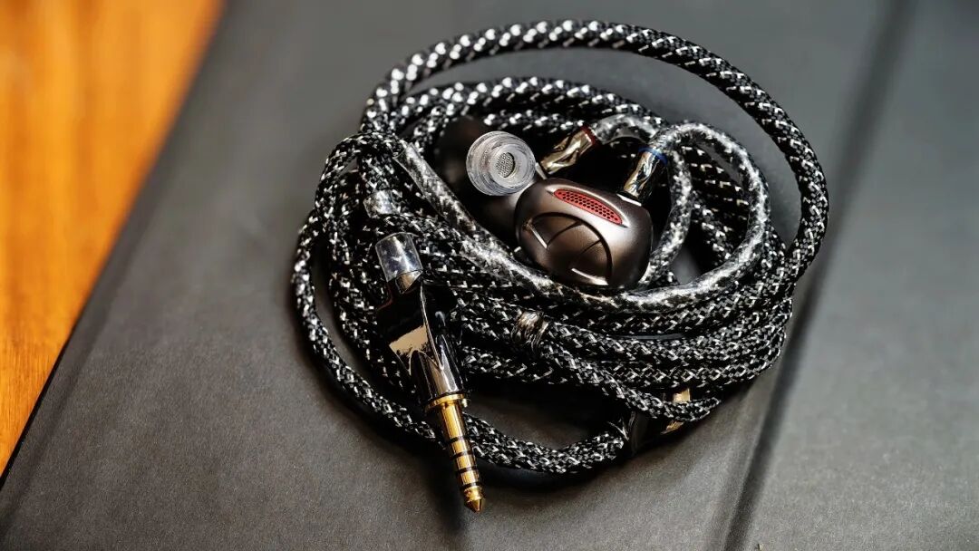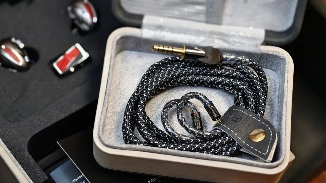 然后这玩意儿的包装那是相当高端,拆开四五层包装才看得到耳塞本体,开箱体验仪式感拉满之余,也彻底断了你买回去跟家里人说“哎呀不贵才几百块”这条后路,傻子都知道这不便宜好吧,上网一搜立马就能要你好看……然后配件也是各种来劲,从耳套到收纳盒再到这根四股6N单晶铜镀银线基+豪华包裹屏蔽层的线材,都是一摸就贼爽的那种。