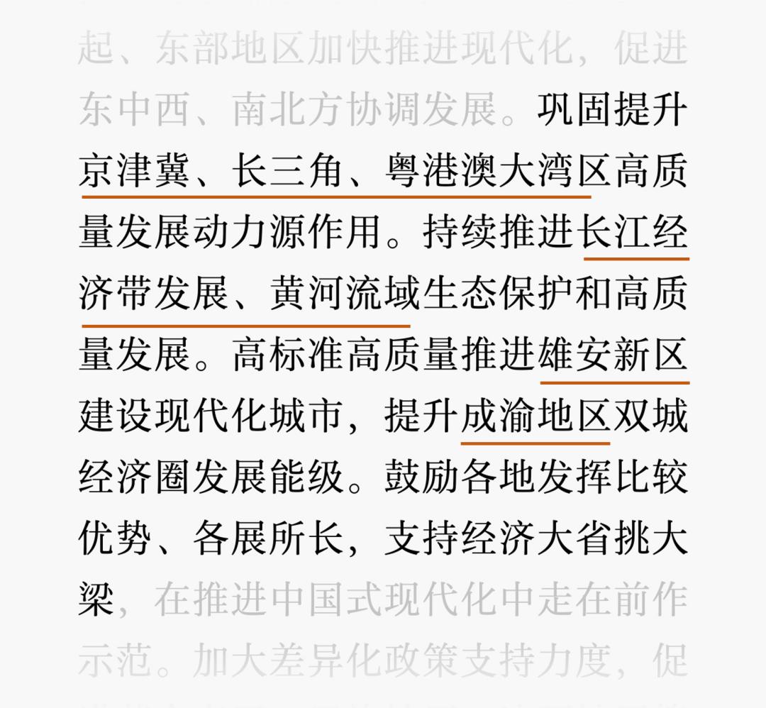 成渝地区、长江中游城市群的地位凸显。“提升成渝地区双城经济圈发展能级”、“推动长江中游城市群等加快发展”被写入文件。