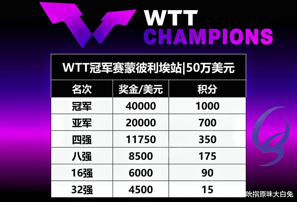 WTT法国蒙彼利埃冠军赛落下帷幕,王艺迪4-3战胜温特夺得女单冠军,莫雷加德4-0横扫松岛辉空,拿到了男单冠军。法国冠军赛是WTT第三档赛事,总奖金是50万,那么现在可以算钱了,国乒7人拿到多少奖金?