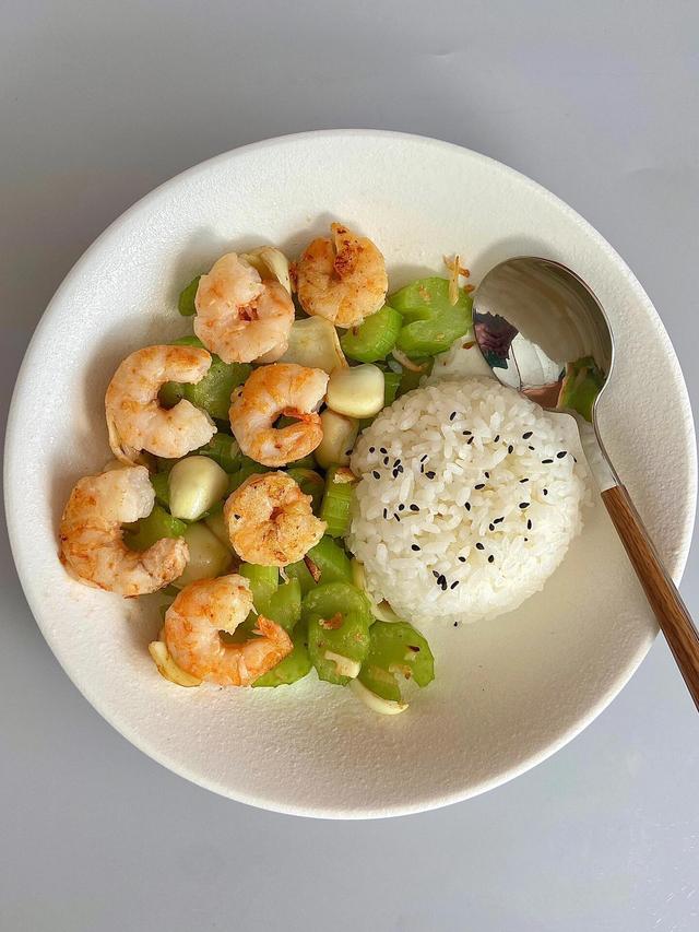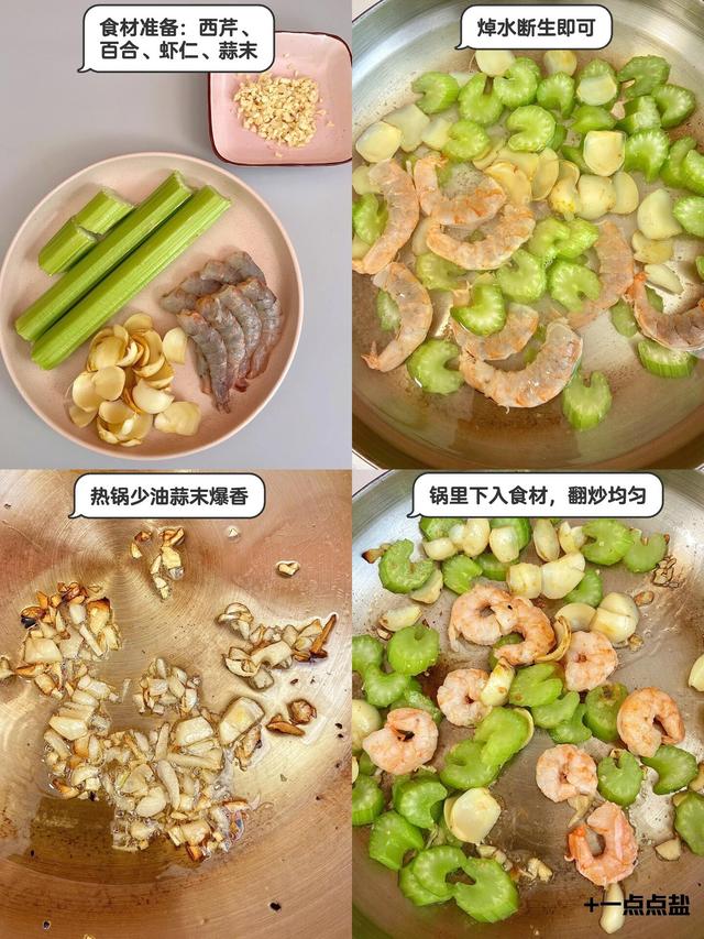 主要食材:西芹、百合、虾仁、蒜末、食用油、盐