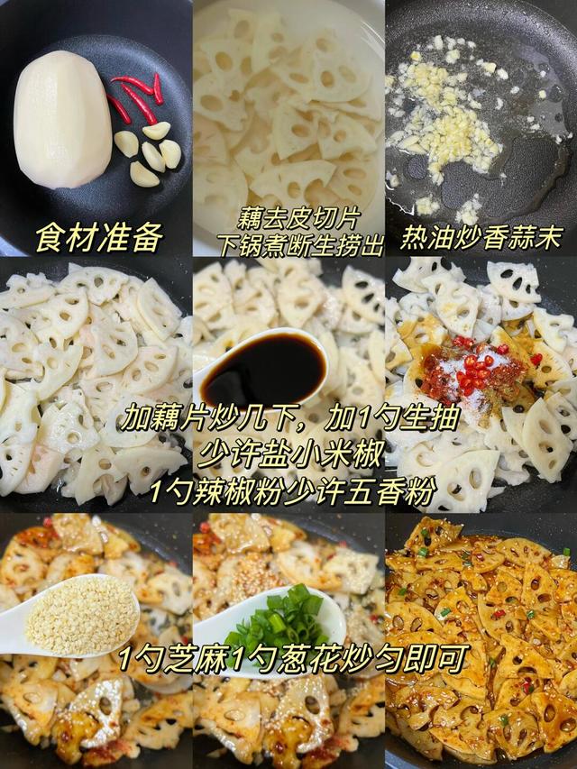 主要食材:莲藕、干辣椒、花椒、蒜末、生抽、盐
