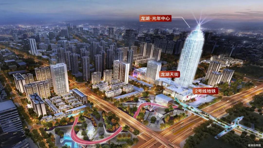 龙湖·光年是集高端住宅、商业、办公于一体的综合体项目,占地约258亩、体量约66万方。龙湖光年中心作为该项目核心载体,总建筑面积约5.2万平方米,楼层总数44层,单层面积1250-1400平方米,层高3.3—4.2米。其与地铁2号线行政学院站无缝接驳,13号线、30号线环伺周边,四轨网格化布局勾勒出便捷的城市交通脉络。