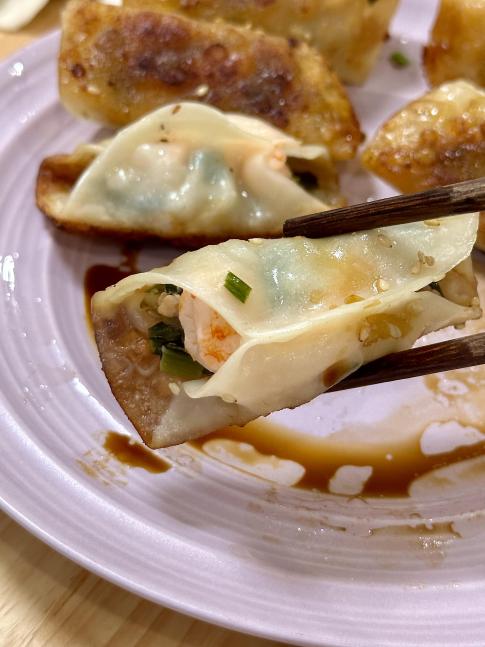 本地人日常解馋常会想到宽婆子,他家锅贴不搞花里胡哨的做法,只讲究新鲜实在。现煎出锅的锅贴香气十足,外皮酥脆,内馅鲜嫩多汁,海鲜味纯正不腥,搭配素馅锅贴一起吃,口感更有层次。