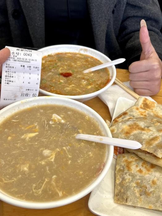 糁汤口感浓郁,鸡蛋花嫩滑,搭配油饼很香。汤头鲜而不腥,暖胃舒服。早上来一碗,整个人都很暖和,是很传统的北方早餐。