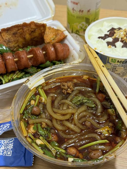 酸辣粉粉条 Q 弹有韧性,汤底酸辣平衡,开胃不刺激。花生和榨菜增加口感层次,分量适中。小店环境简单,逛累了吃一碗很舒服。