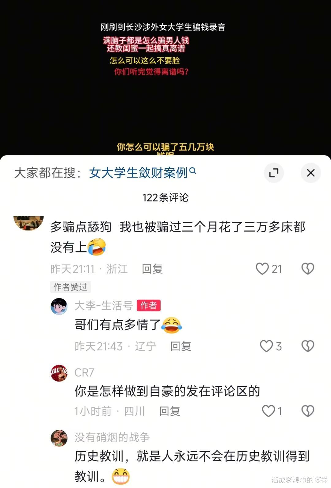 近期,长沙涉外女大学生交流利用婚恋骗钱经验的录音爆出,相当毁三观。