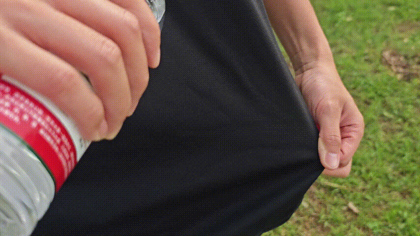 防水T恤,村民直接倒水测试,T恤的疏水层能把水挡在外层,不会渗到里面或者接触到身体。官方说它的防水等级是超行标5级,实测下来,应对日常小雨、露水完全没问题,比普通雨衣更轻便,比普通T恤更防水,户外出行太安心了。