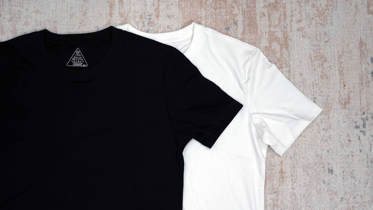 拆开后就能看到T恤本身,摸起来的手感直接惊艳——不是普通功能T恤那种硬邦邦、有涂层感的面料,而是软糯细腻的纯棉触感,上手亲肤又顺滑,甚至比我家里几百块的纯棉T恤还要细腻。