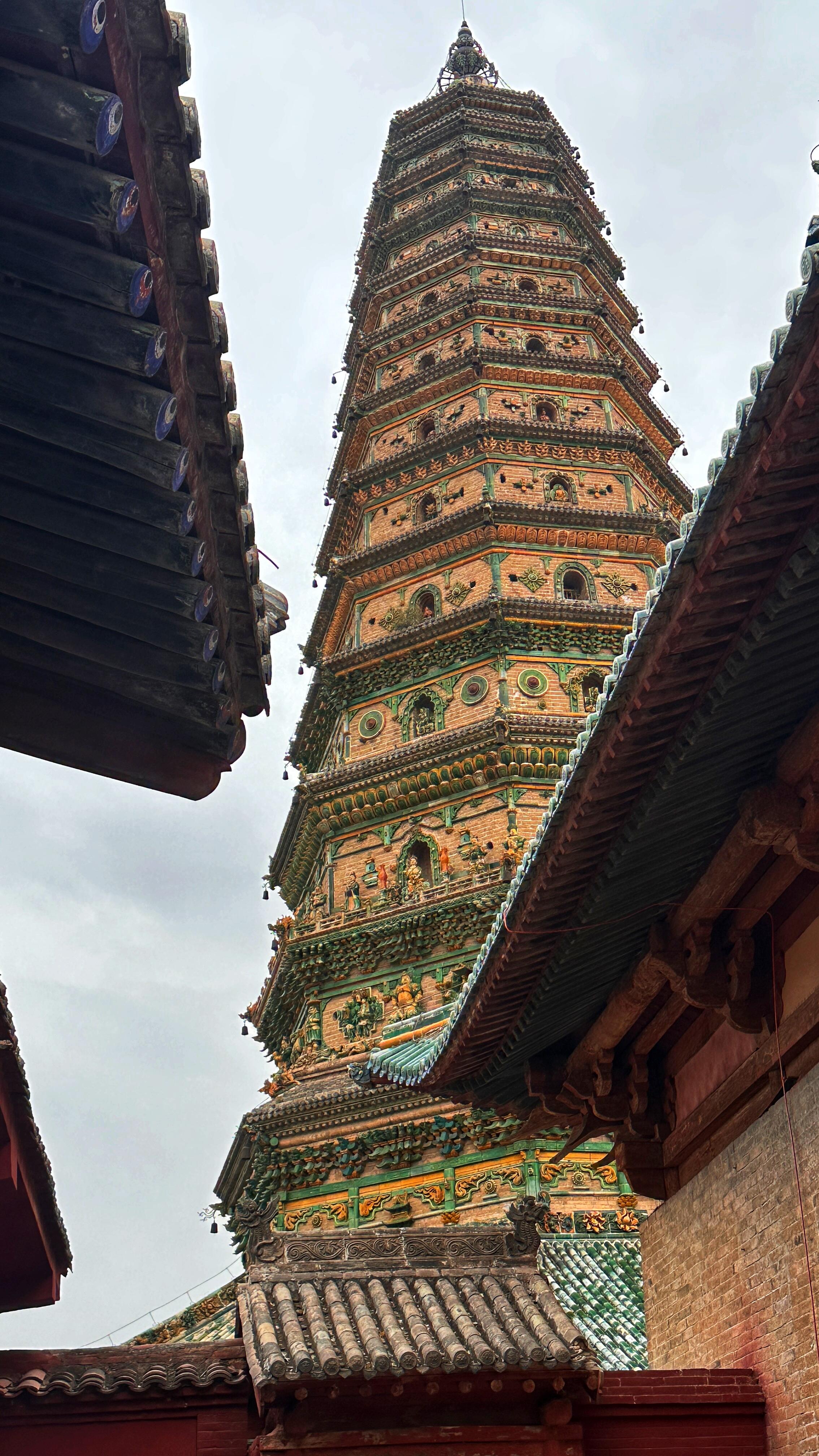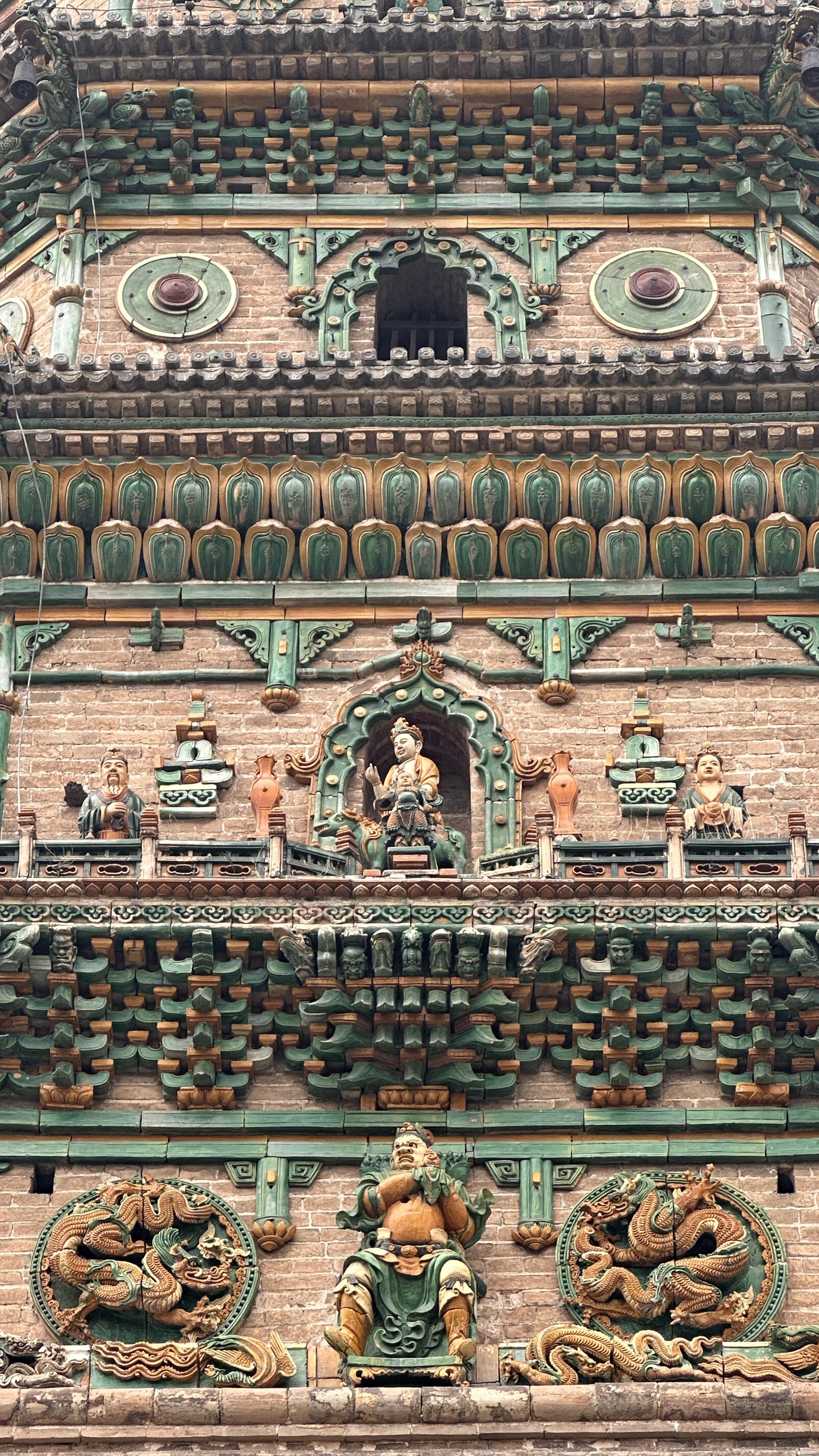内部的"之"字形阶梯是建筑智慧的具象化。攀登者需侧身翻转才能上行,这种反常规的设计实则暗藏声学机关——阶梯的转折处形成天然的共鸣腔,两人相隔三层对话,声波会通过拱券结构清晰传导,这种"建筑传音术"比欧洲同期的教堂声学设计早了200年。当脚步声在琉璃塔内激起嗡鸣,古老的建筑仿佛在以特有的频率,诉说着明代工匠对空间、材料与光学的超前理解。