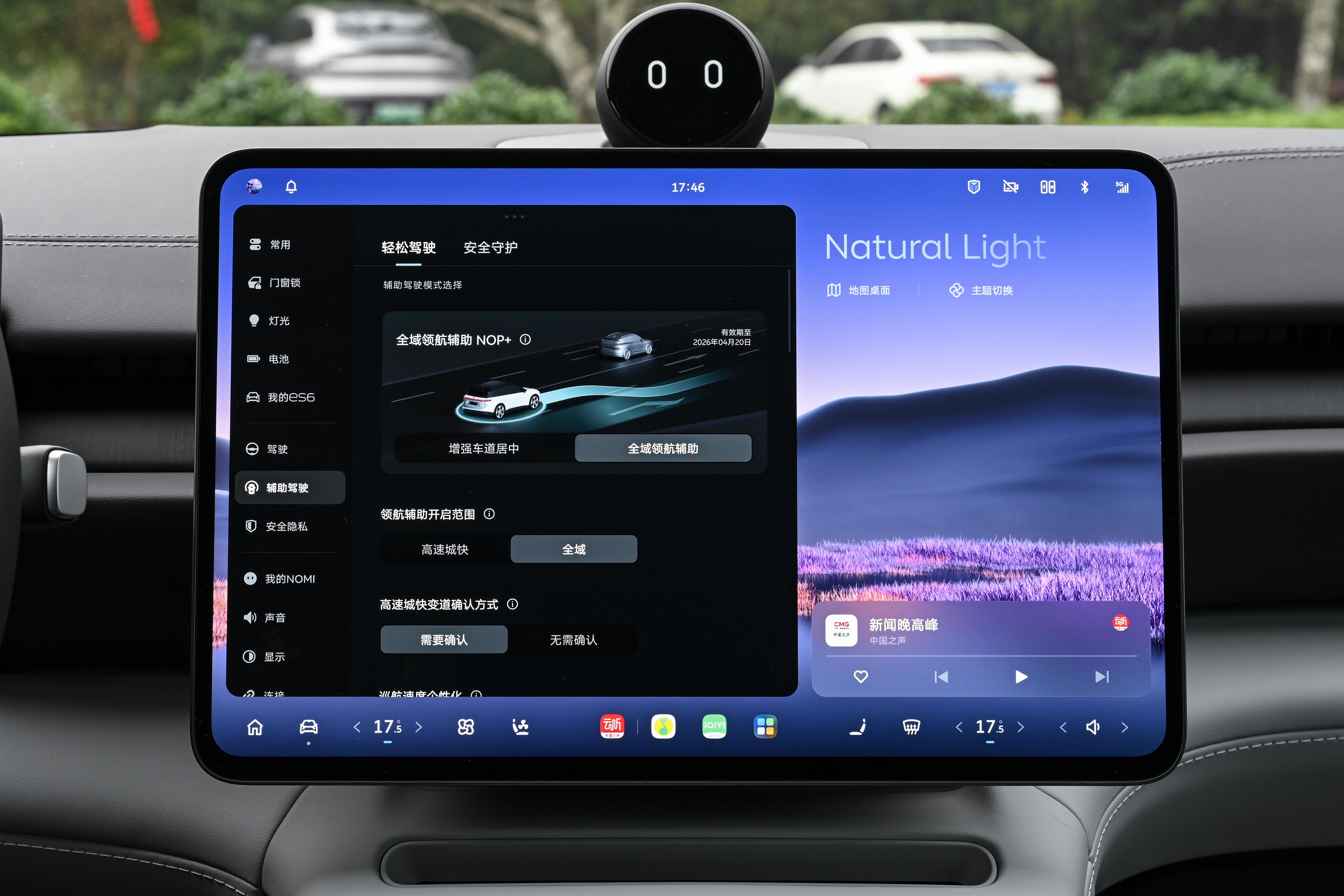 智能辅助驾驶是这次升级的重点领域。2026款ES6搭载了全新版本的NWM蔚来世界模型,配合升级到Cedar S 1.4.6系统,还有标配的辅助驾驶指示灯(集成在后视镜上),这套组合让辅助驾驶体验有了明显提升。