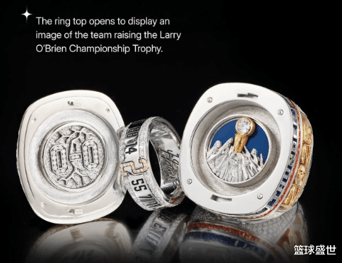 2025年总冠军戒指,每枚都镶嵌着超过800颗手工镶嵌的宝石。戒指顶部主要成分为14K金,上面镶有一百颗钻石,刻有“NBA CHAMPIONS”的字样。接着还有一项突破性的创新: