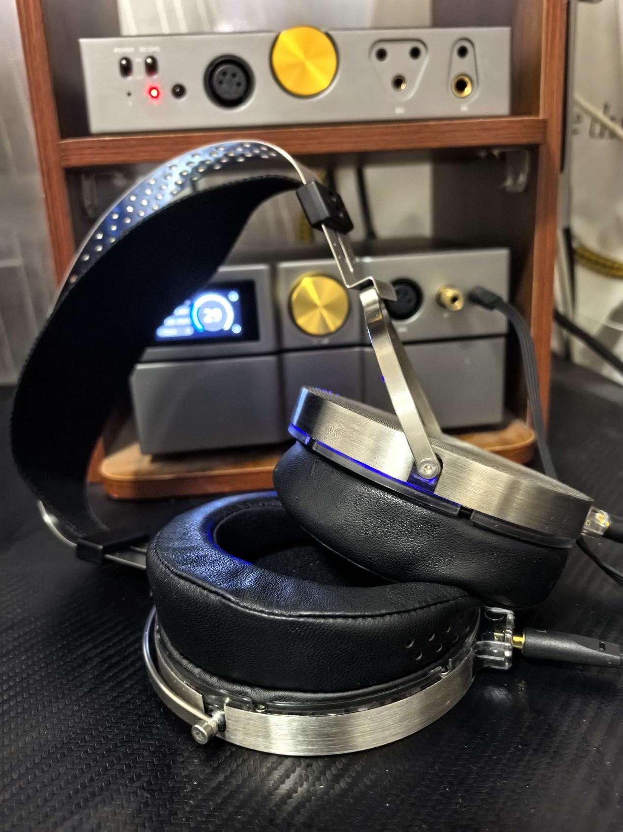 欧尼士 XP1 作为便携一体机市场中极具代表性的产品,自带经典的英国声特质,人声温润透亮、三频均衡舒展、声场立体规整,整体音色不冷不硬,自带舒缓自然的乐感,同时外接电源模式下能提供充沛的平衡输出功率,驱动能力在便携机型中属于第一梯队,这套搭配最直观的惊喜,在于 XP1 的温润音色完美中和了乐园 2 原生偏清冷、直白的调音底色,形成了 “通透 + 润色” 的绝佳互补,完全摆脱了科学调音耳机常见的 “干、冷、硬” 听感,成为了便携桌面场景下兼顾日常聆听与素质表现的黄金组合。在 XP1 的驱动下,乐园 2 的低频表现完全超出了便携场景的预期,原本质感优先、氛围感偏克制的低频,在 XP1 的加持下,量感有了适度的提升,下潜深度依旧出色,回弹干净迅捷的特质完全保留,同时中低频的厚度与氛围感有了明显增强,既没有出现拖沓臃肿的问题,也彻底摆脱了 “水月雨平板缺低频” 的刻板印象,试听阎学敏《鼓诗》时,鼓点的形体感清晰扎实,鼓皮震动的残响自然舒展,鼓体的共鸣感完整呈现,没有丝毫的软脚与发散,完全不像是便携一体机驱动出来的低频表现。中频人声是这套搭配的最大亮点,乐园 2 原生的人声结像居中、位置微靠前,音色干净直白,而 XP1 自带的温润透亮感,为人声增添了恰到好处的润色,既没有改变耳机原生的还原向调校,也让人声的血肉感与情感表达有了明显提升,彻底解决了耳机人声偏直白、慢歌抒情人声氛围感不足的短板,试听王菲《暧昧》时,人声的气息转换、尾音的颤音细节清晰可闻,嗓音的空灵质感完整保留,同时唇齿音的处理顺滑自然,没有丝毫的齿音与毛刺,人声与背景伴奏的分离度优秀,不会出现伴奏盖过人声的问题,试听陈奕迅《富士山下》时,男声的喉音质感与胸腔共鸣完整呈现,声音的厚度与密度拉满,完全没有初代中频偏薄干涩的问题。高频部分,XP1 的驱动完整保留了乐园 2 的核心优势,高频明亮通透、延伸极广,泛音丰富,自带的静电式空气感完全释放,同时 XP1 的温润音色让高频的线条感更加圆润顺滑,即便是长时间聆听,也不会出现听觉疲劳,试听帕格尼尼《钟》时,小提琴的琴弦摩擦质感细腻真实,泛音的延展自然飘逸,高音区的光泽感与穿透力十足,却没有丝毫的尖锐与刺耳,弱音尾韵的还原堪称极致,完全展现了这副耳机在高频上的顶级水准。声场与动态方面,XP1 驱动下的乐园 2,声场横向舒展,纵向深度有不错的表现,整体规整立体,没有丝毫的挤压与扁平感,器乐结像井然有序,分层清晰,应对流行、小编制室内乐、ACG 等曲风完全游刃有余,即便是应对中小型编制的古典乐,也能呈现出不错的舞台感,动态表现从容自然,强弱起伏的对比清晰,大音量下也不会出现失控与失真,完全满足了日常便携、桌面小体积场景的全部聆听需求。如果说欧尼士 XP1 让我们看到了乐园 2 “好听” 的一面,那么这套乾龙盛分体西装套,就彻底解锁了乐园 2 的全部潜力,让我们看到了这副耳机在素质层面的天花板,这套组合中,QA390MOD 本身就以结像安定、背景漆黑、中性无染的特质著称,而 HQ1 纯甲类耳放提供了强悍的推力储备,搭配 LPS 分体线性电源后,声音的安定感、动态余量、细节还原能力都实现了跨越式的提升,能够完全驱动 100mm 的大尺寸振膜,将耳机超低失真、高解析的特质发挥到极致。在这套分体西装套的驱动下,乐园 2 的声音完成了从 “便携旗舰” 到 “台式 Hi-End” 的蜕变,整体声底更加纯净,背景漆黑无底噪,结像的扎实度、声场的规模感、动态的凌厉度都有了质的飞跃,完全展现了这副耳机作为旗舰平板的真正实力,低频部分,这套组合驱动下的乐园 2,将 “质感优先” 的特质发挥到了极致,低频的下潜深度直接拉满,回弹速度更快,收放利落干脆,残响控制精准,没有丝毫的拖沓与臃肿,中低频的密度与扎实度达到了顶级水准,低频的形体感、层次感与空间感完整呈现,试听《拉德斯基进行曲》时,定音鼓的落点精准清晰,鼓点的冲击力十足,却没有丝毫的发散与失真,低频的声浪能够完整铺开,形成了极强的现场氛围感,试听马勒《第五交响曲》时,低频的层次感与分离度堪称惊艳,低频声部与中高频声部的界限清晰,不会出现糊成一团的问题,即便是乐曲的爆棚段落,依旧能保持极低的失真与优秀的控制力,完全驾驭了大编制交响乐的低频需求。中频部分,这套组合完整保留了乐园 2 中正无染、还原向的调音特质,同时将中频的密度、细节解析力、结像精准度提升到了新的高度,人声的结像更加扎实凝聚,口型清晰精准,没有丝毫的模糊与发散,人声的细节还原极致,歌手的气息转换、嗓音的细微质感变化都清晰可闻,完全实现了 “录音棚级” 的还原效果,试听阿卡多《魔鬼的颤音》时,小提琴的基音还原精准,琴腔的共鸣质感自然真实,琴弦的摩擦细节细腻完整,没有添加任何多余的染色,原汁原味地呈现了乐器本身的音色特质,人声与乐器的分离度、乐器之间的分层感都达到了同价位第一梯队的水准。高频部分,是这套组合与乐园 2 搭配的最大亮点,在乾龙盛分体套的驱动下,乐园 2 的高频延伸完全释放,20Hz-42kHz 的频响范围被完整挖掘,高频的细节信息量拉满,泛音丰富自然,静电式的飘逸感与空气感扑面而来,同时极高频的控制依旧精准,线条精致圆润,没有丝毫的毛刺与尖锐感,试听海菲兹《流浪者之歌》时,小提琴高音区的泛音延展自然