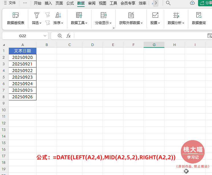 ①TEXT(A2,"0000-00-00")先将文本数字转换为2025-09-20这样的文本形式。