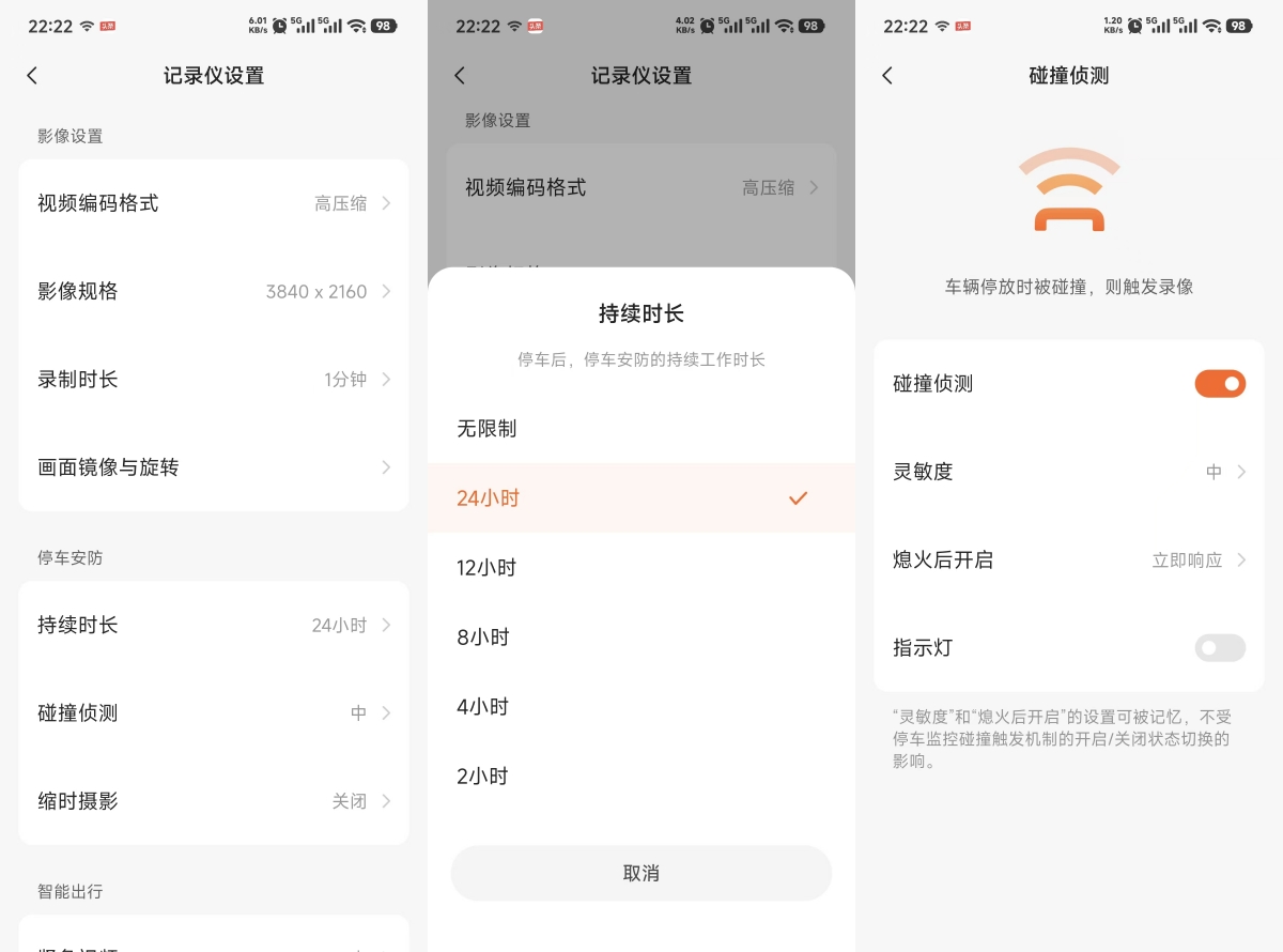 还可以在手机APP上对记录仪进行设置。绝对比在小小的行车记录仪上按动上下左右要方便得多!