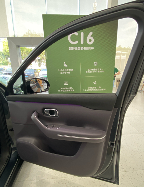 零跑C16最怪异的地方是这个座椅,它有一个强行被抬高,相比其他座椅,存在两层护板,所以你坐在侧翼上下车时,车顶很容易被顶着头。另外C16的坐垫侧翼更硬,上下车时更容易被硌屁股,奕派008相比更柔软一点。