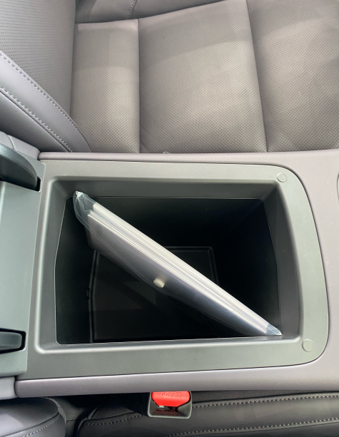 扶手箱跟零跑C10一样,不再是C11的蝴蝶对开式盖板。长度方向一般,像这样的说明书就只能斜着放。