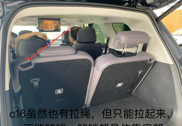 从这个座椅风格可以看出来,几乎跟理想汽车的座椅造型一模一样,包括吊紧线的位置,甚至还跟理想一样加送了软枕。