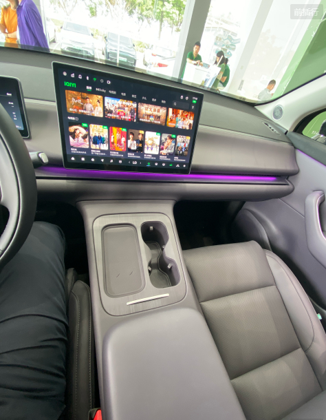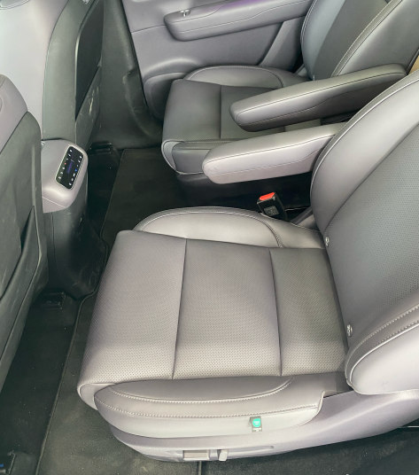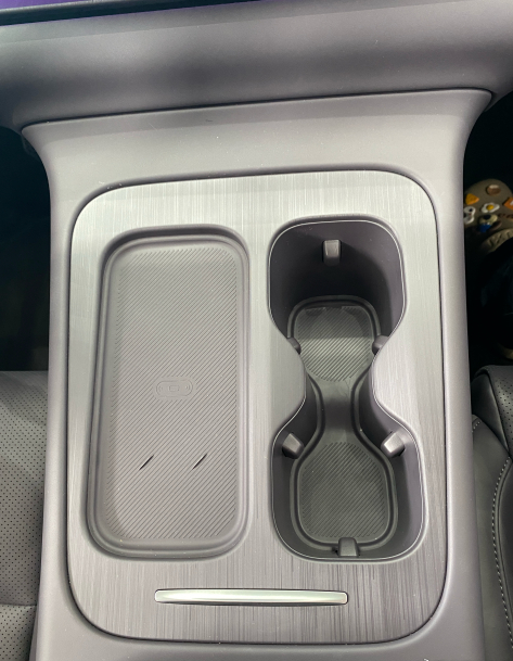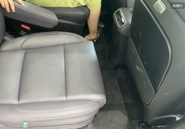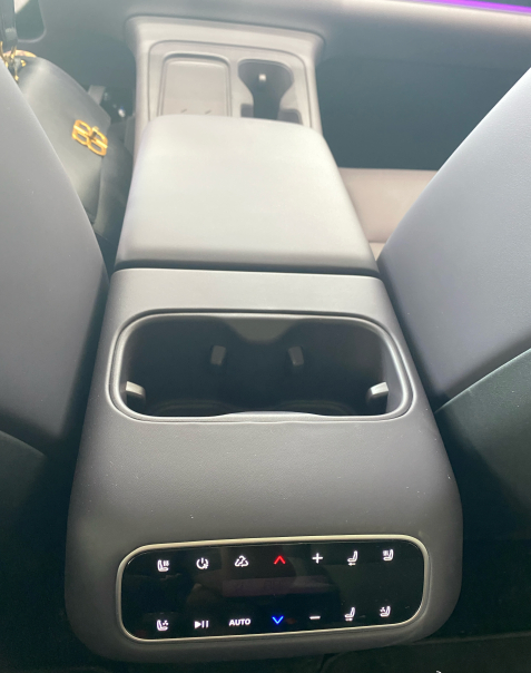 从console后端的布局也可以看出,杯托的位置也跟理想汽车的类似,因此在二排独立座椅上是没法放杯子的,也没有办法给手机充电,手机充电的接口在Console后端的下方。当二排座椅退到最后时,其实这些功能的使用是有一些不方便的。